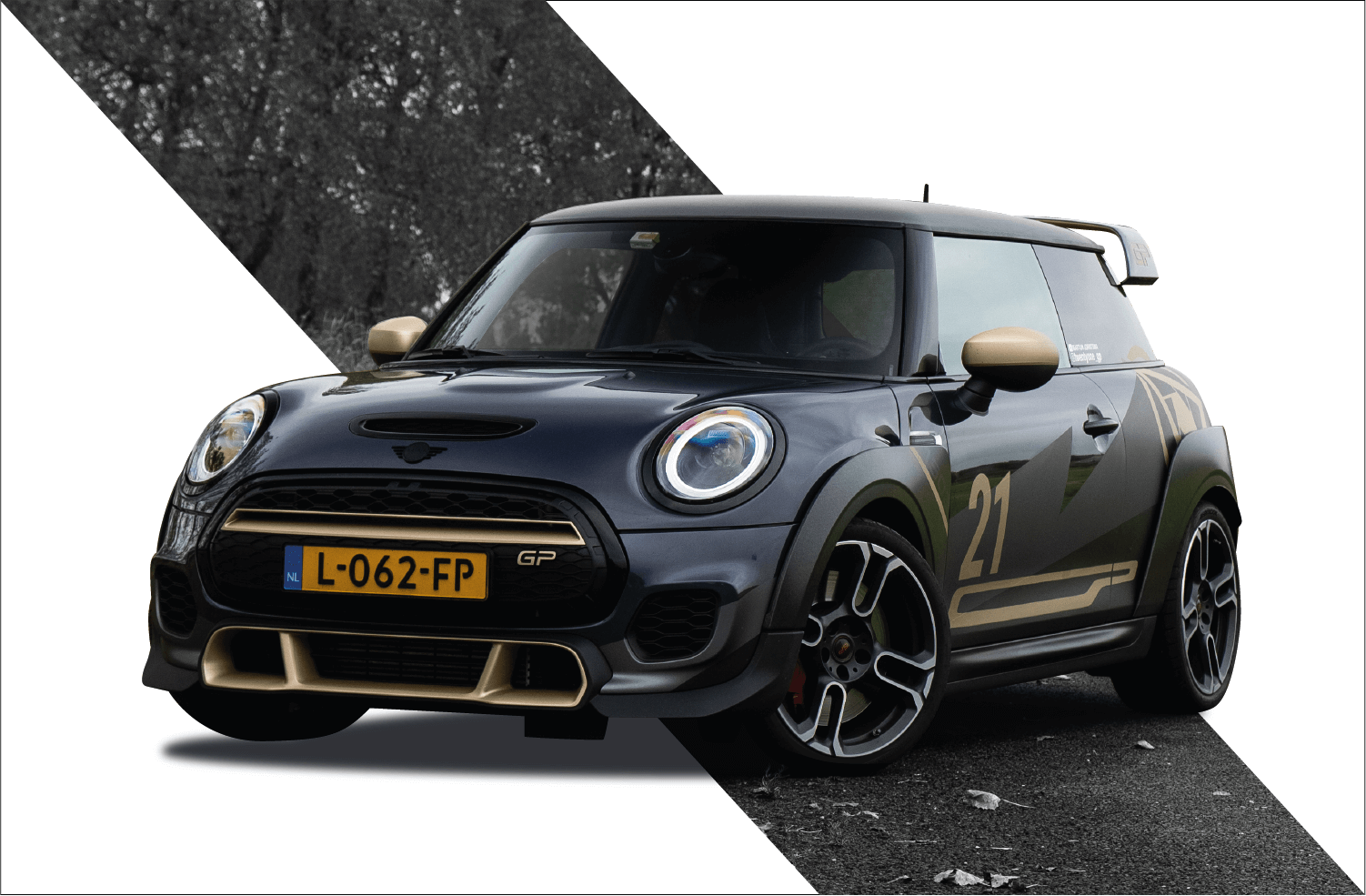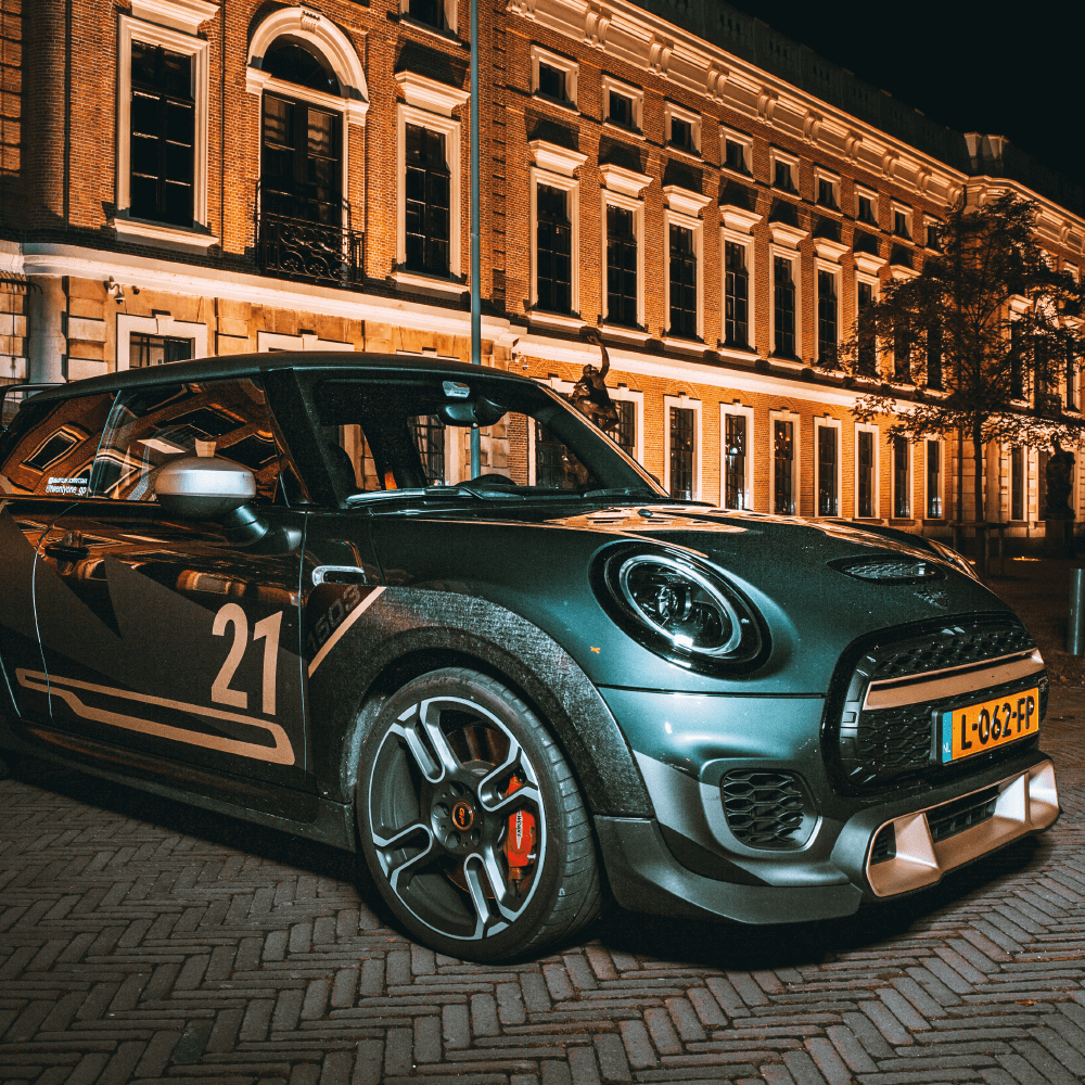 Van deze auto’s zijn er in totaal maar 3000 van gemaakt. StudioPries heeft de MINI GP3 1503 van een custom design mogen voorzien. Deze livery is gebaseerd op de huisstijl van het bedrijf JustPost. Aangezien de lak van de auto glanzend is hebben we gekozen voor een matte afwerking voor de folie. Dit geeft een speels effect op de MINI en maakt het net wat persoonlijker.