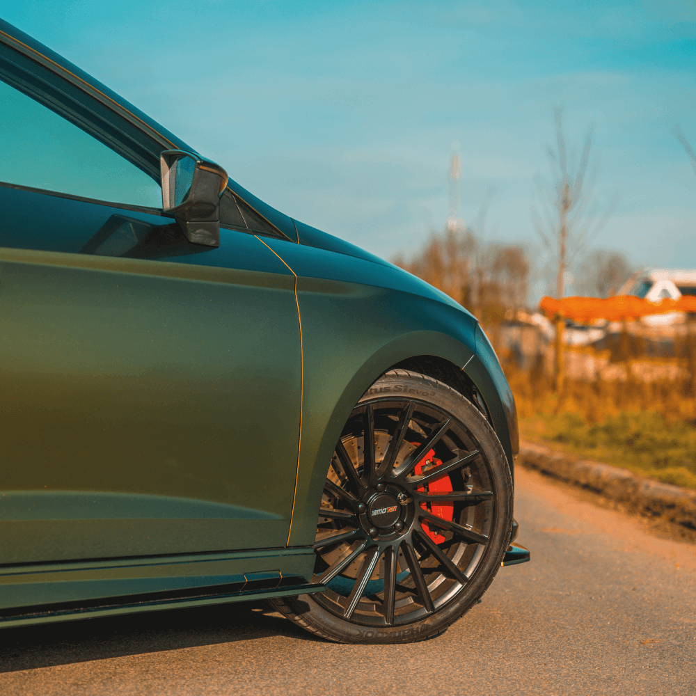 Een unieke kleur voor een bijzondere auto. Deze Cupra is namelijk flink aangepakt qua vermogen en uiterlijk. Alleen de opvallende kleur miste hier nog bij aangezien de autolak wit was. Daarom is er gekozen voor de SWF Fresh spring met een “colorflow” afwerking. Dit wil zeggen dat de kleur zich aanpast aan het lichtinval. Door de strakke lijnen van de Cupra komt de kleur heel mooi naar voren
